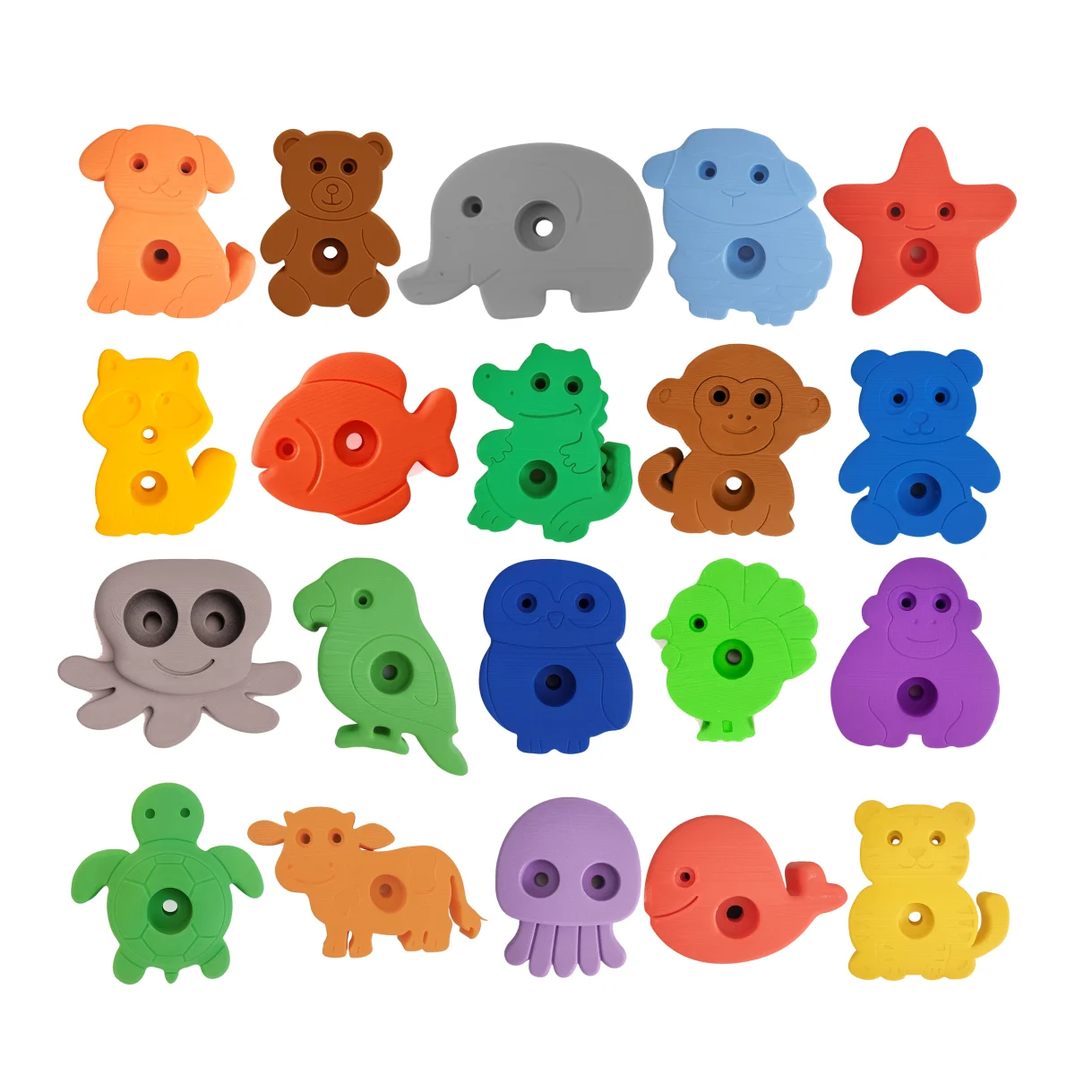 گیره صخره نوردی کودک طرح حیوانات بسته 20عددی همراه با حلقه ژیمناستیک کودک