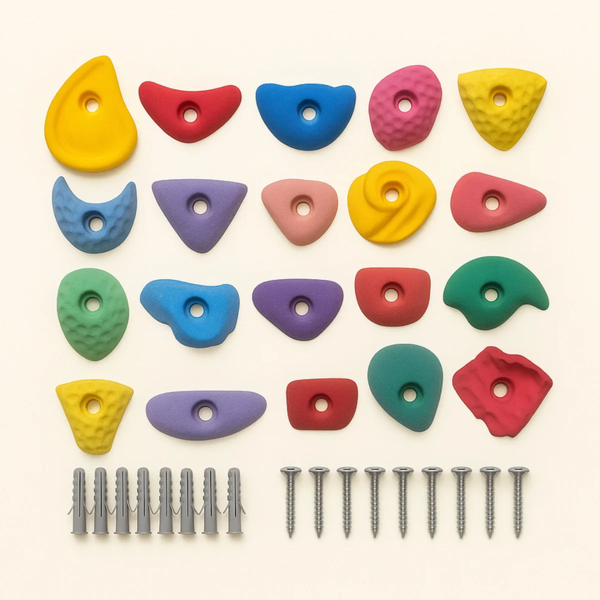 گیره صخره نوردی  کودک و نوجوان ۲۰ عددی (همراه با اتصالات نصب روی دیوار)